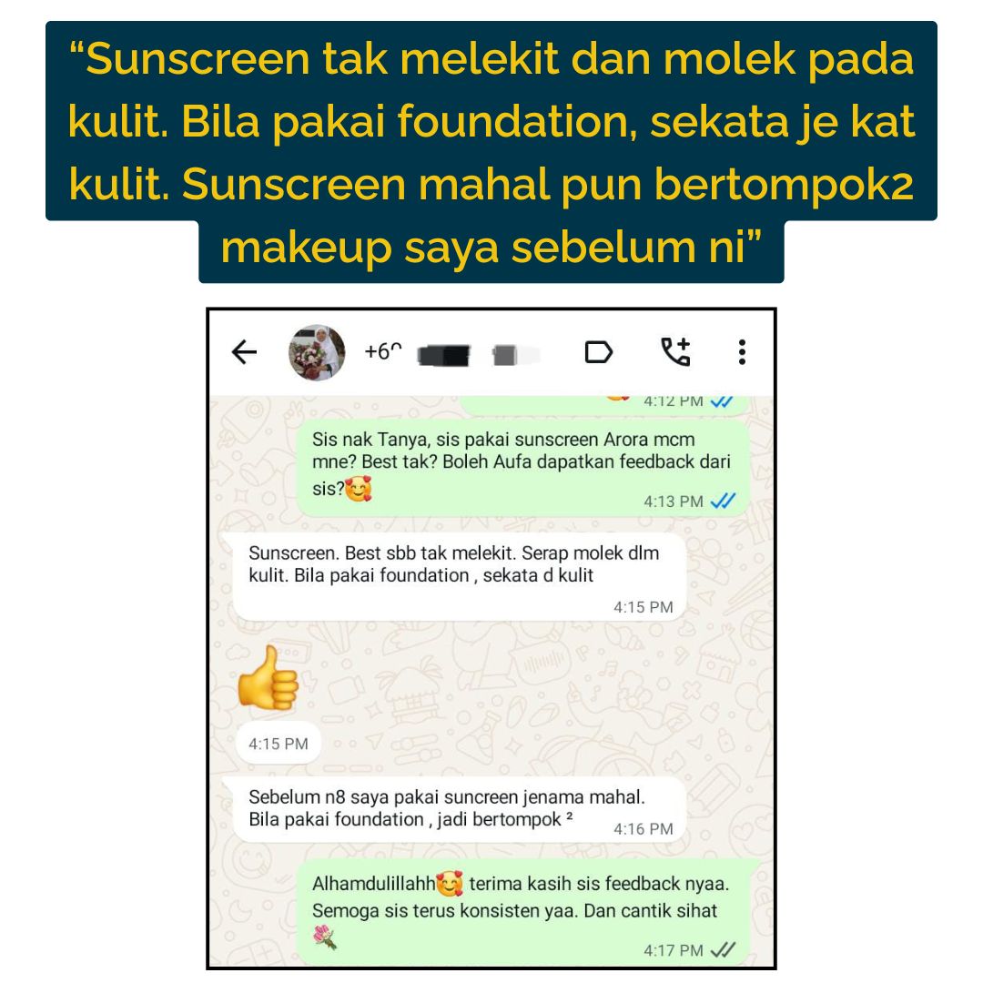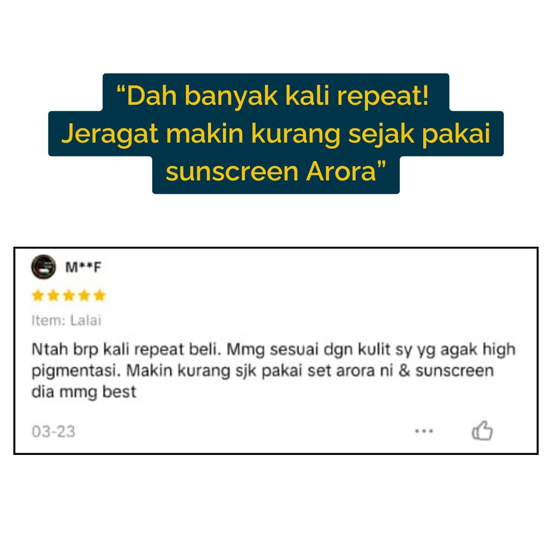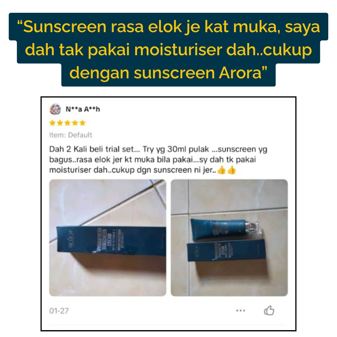 Sunscreen Arora serendah RM30 sahaja untuk menguji keseraiannya dengan kulit wajah anda