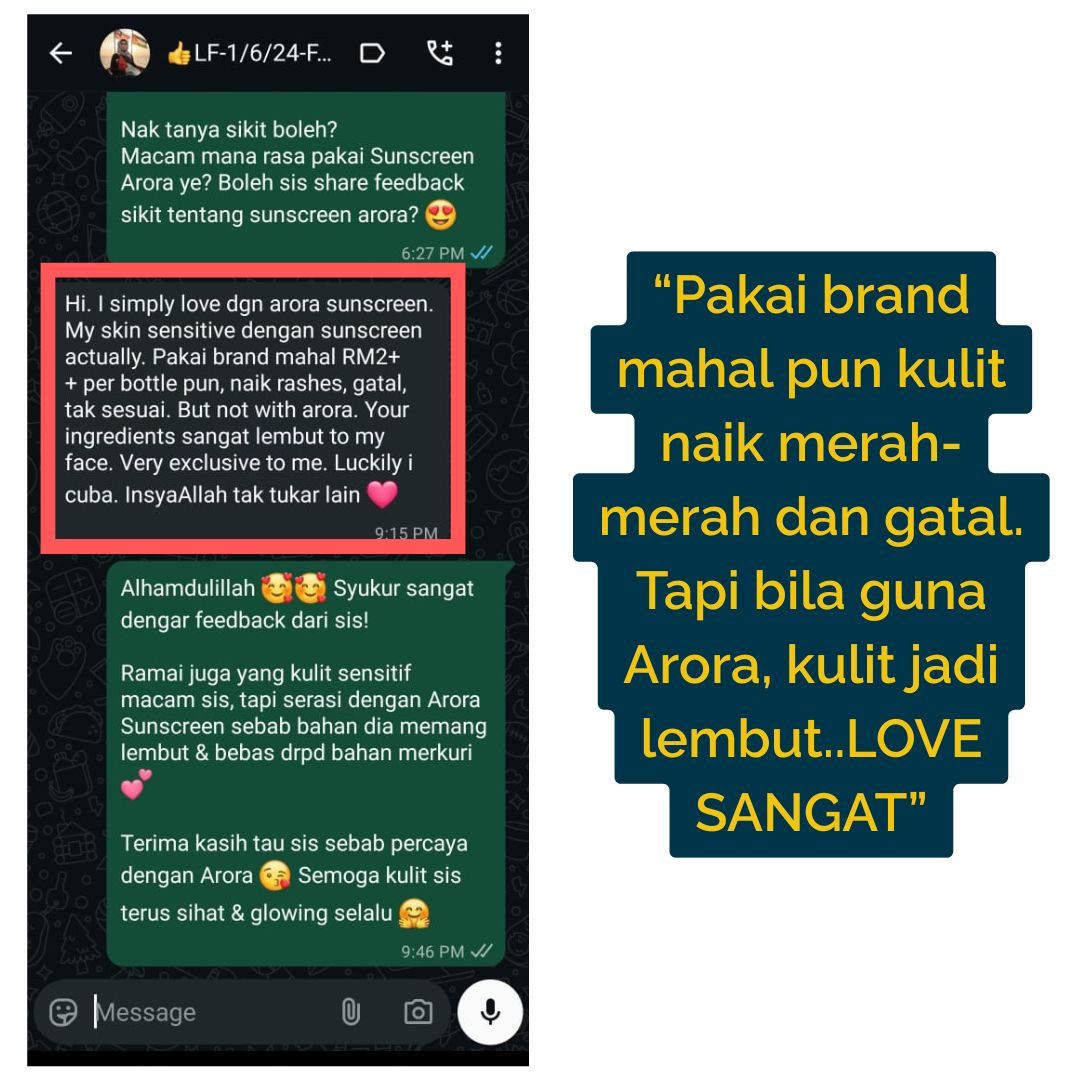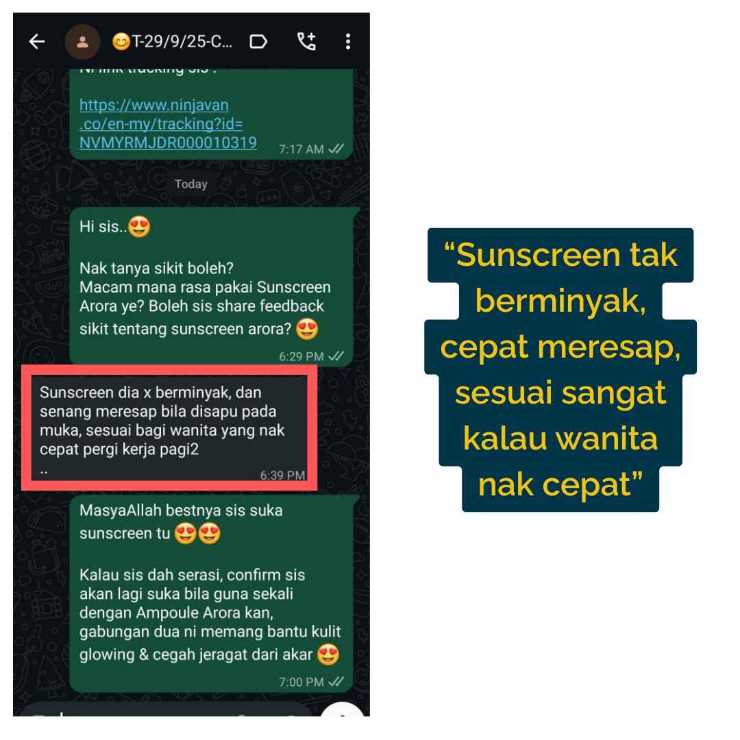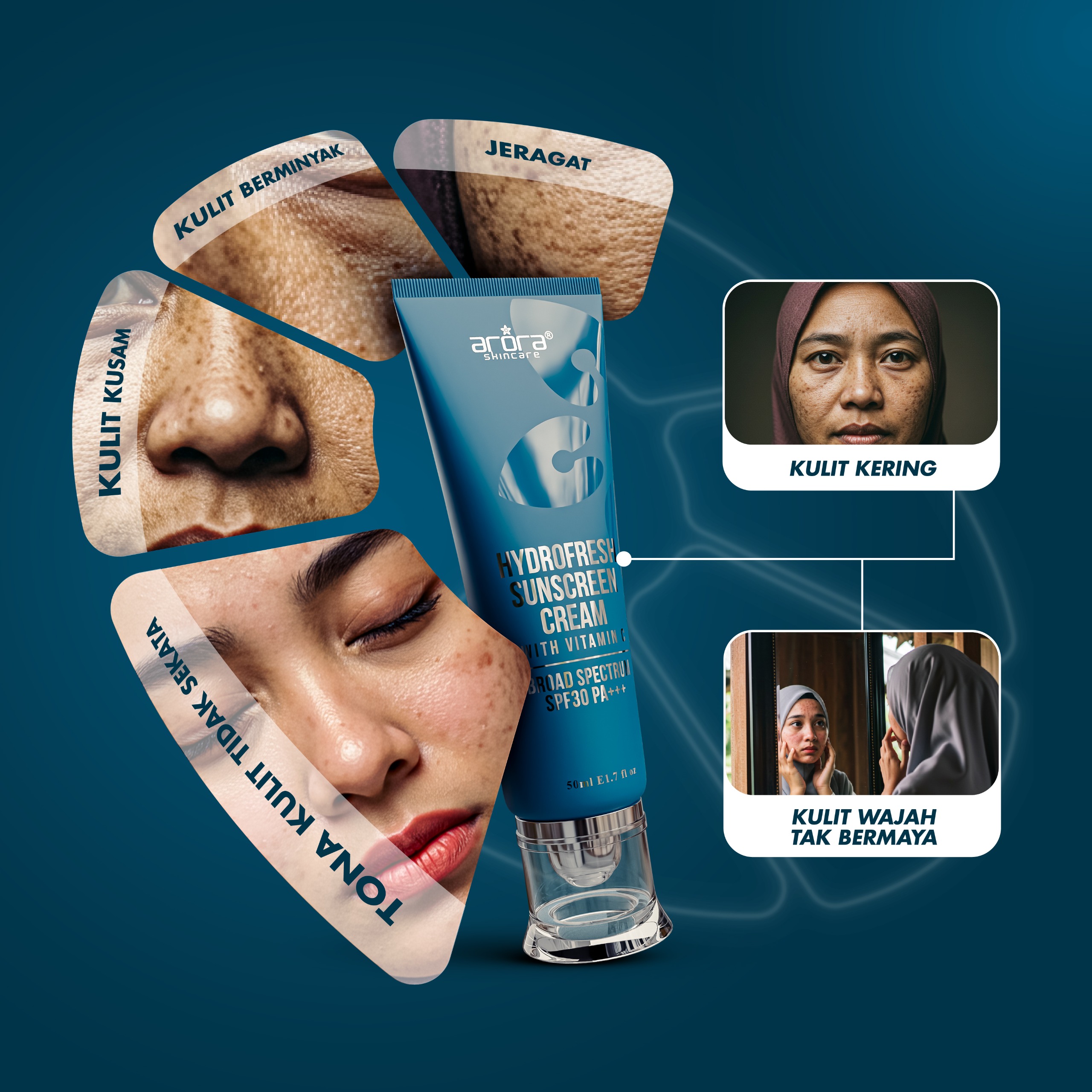 Sunscreen Arora serendah RM30 sahaja untuk menguji keseraiannya dengan kulit wajah anda