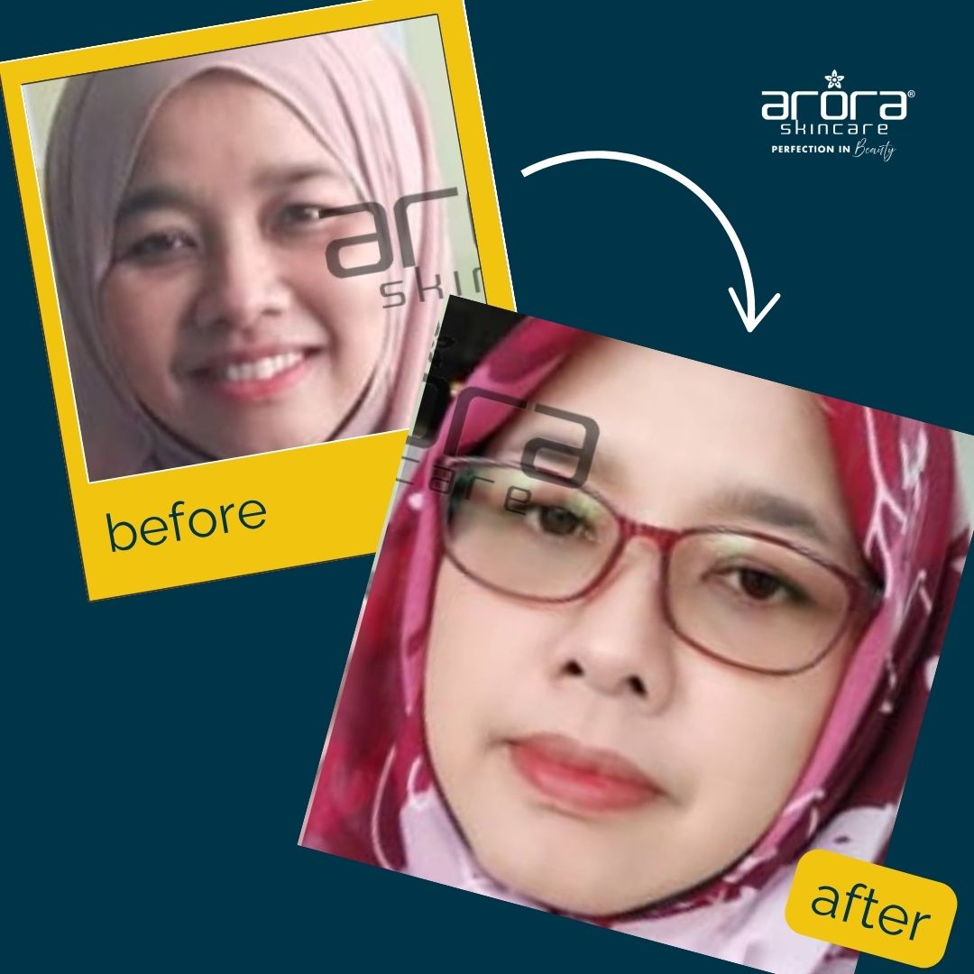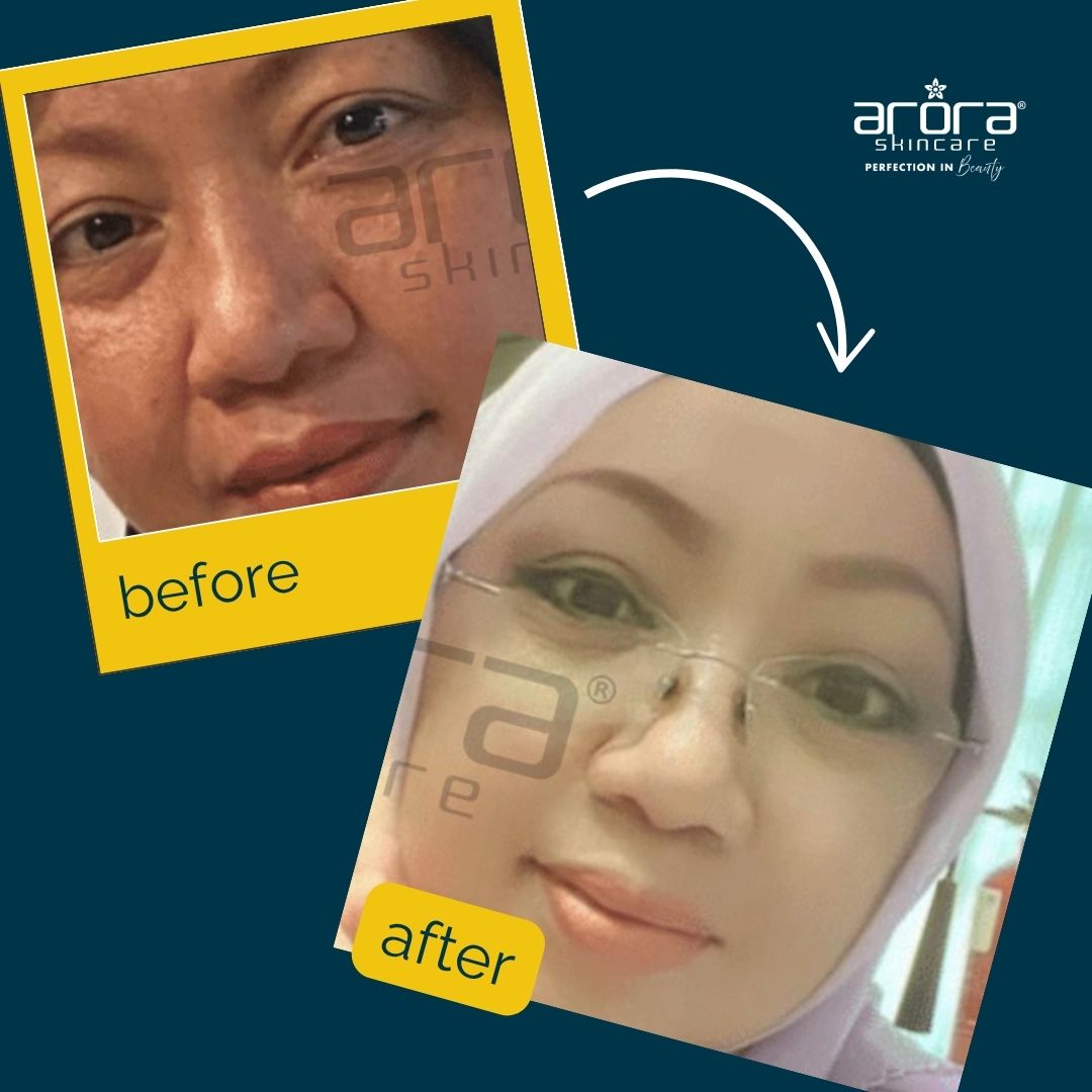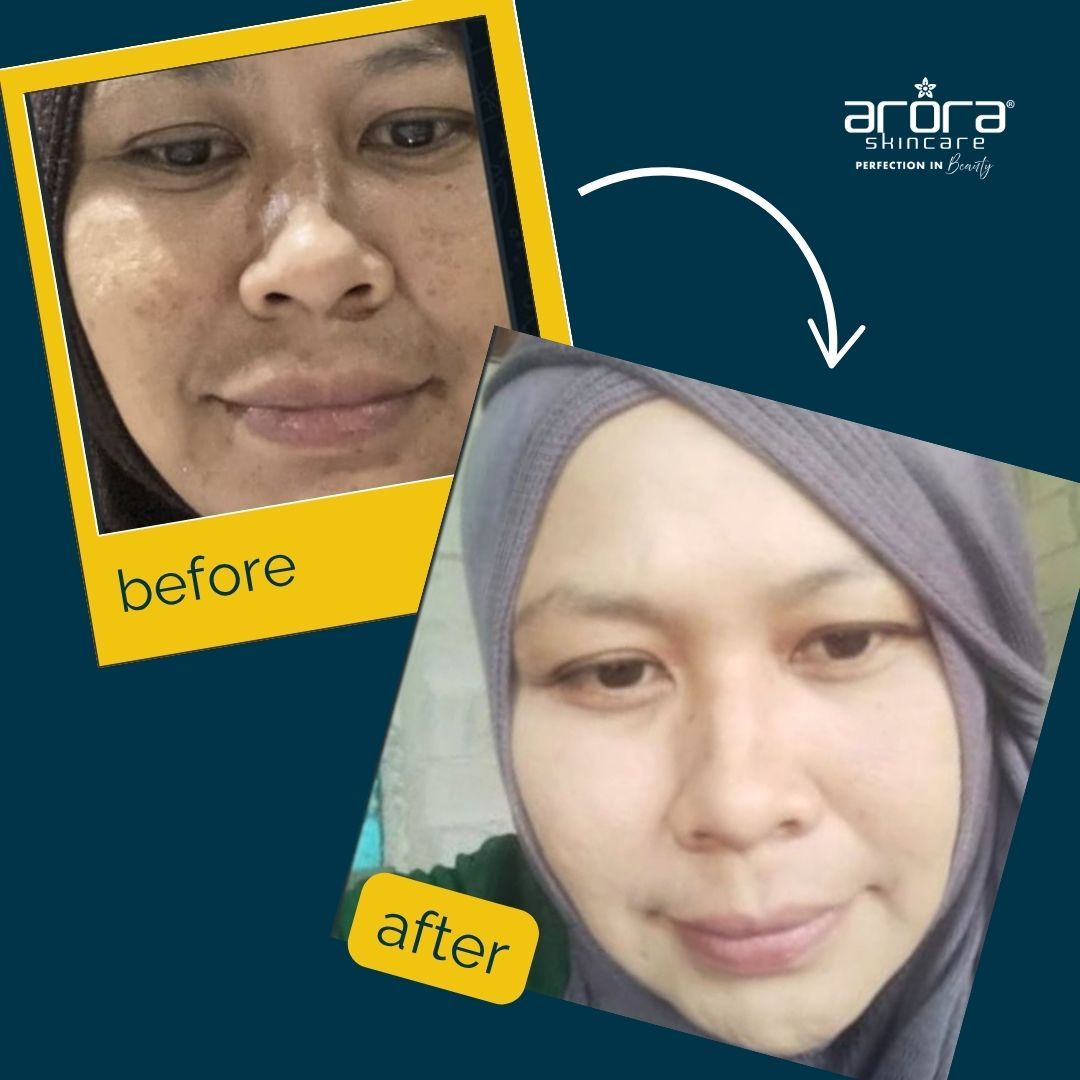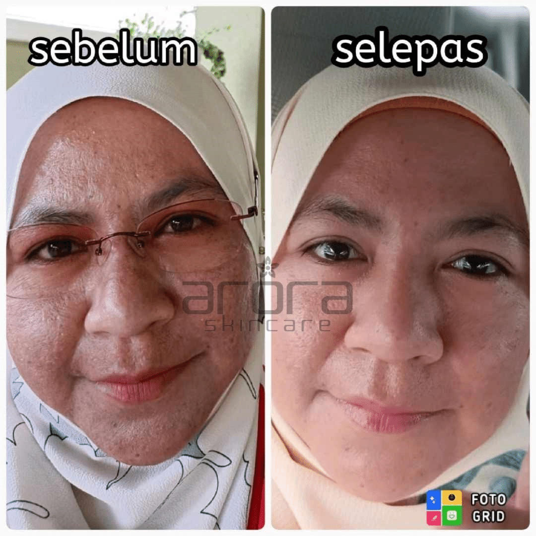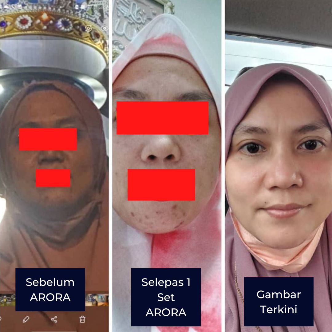 Selepas 1 bulan je beliau amalkan Arora Skincare, masalah kulit terbakar dan jeragat pada wajah beliau hampir 100% sudah hilang!