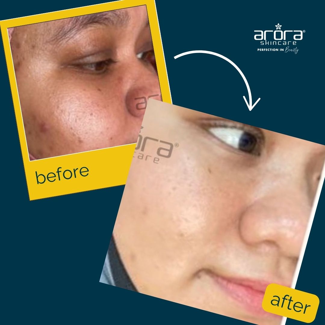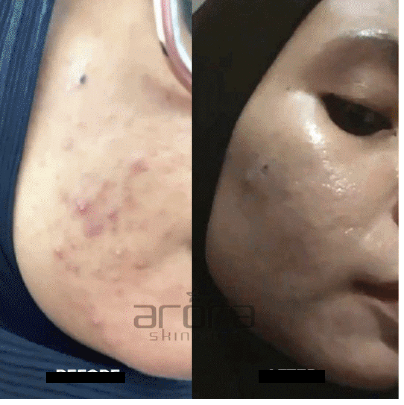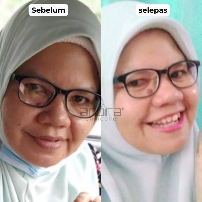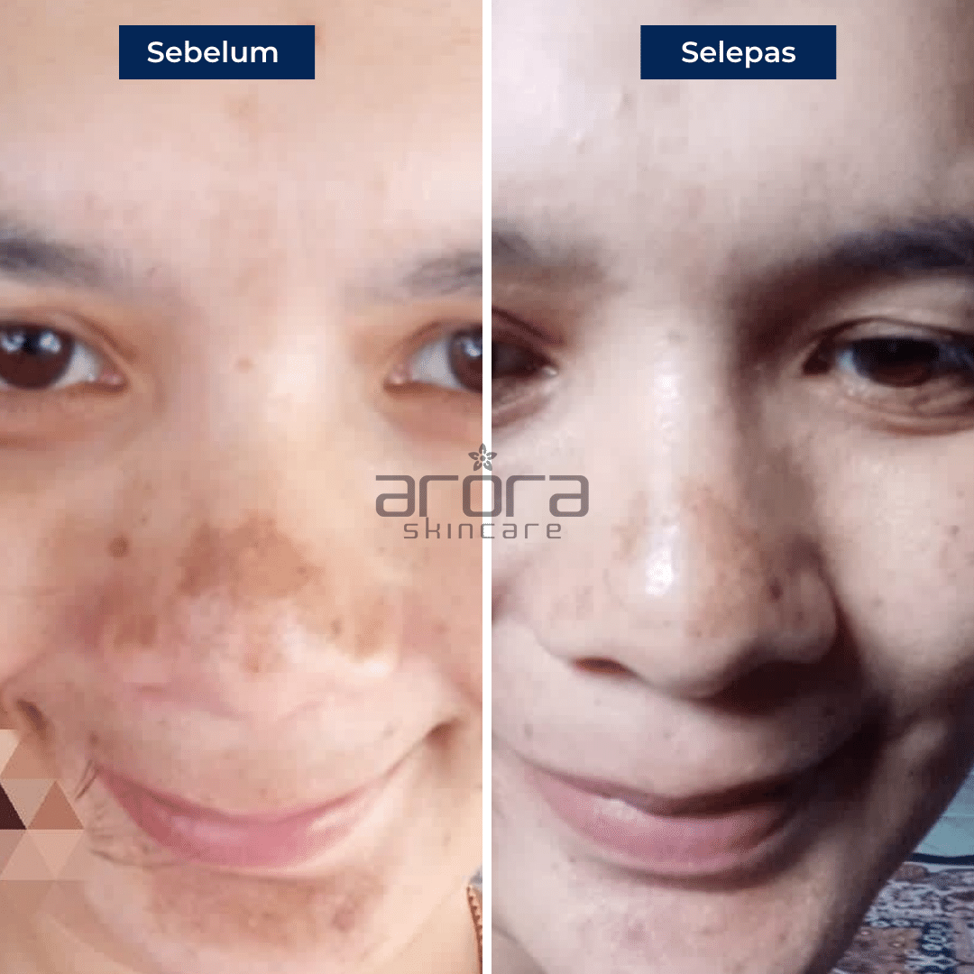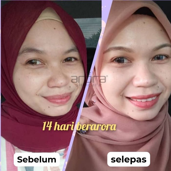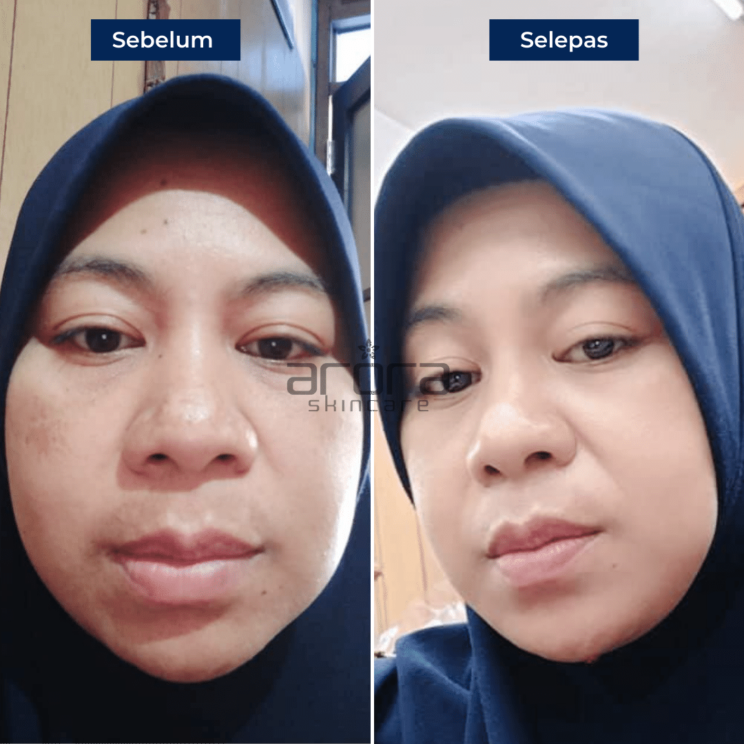 Selepas 1 bulan je beliau amalkan Arora Skincare, masalah kulit terbakar dan jeragat pada wajah beliau hampir 100% sudah hilang!